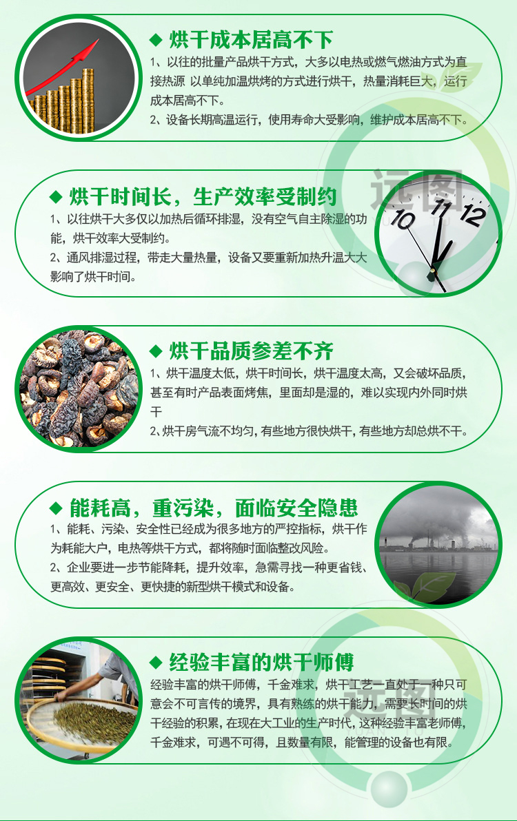 注意了以上幾點,這樣烘干的豆腐品質(zhì)好,表面的油份和光澤度適當(dāng),不易脆斷,保留了成品的色、香、味、形,且豆腐烘干過程零污染,損耗小。